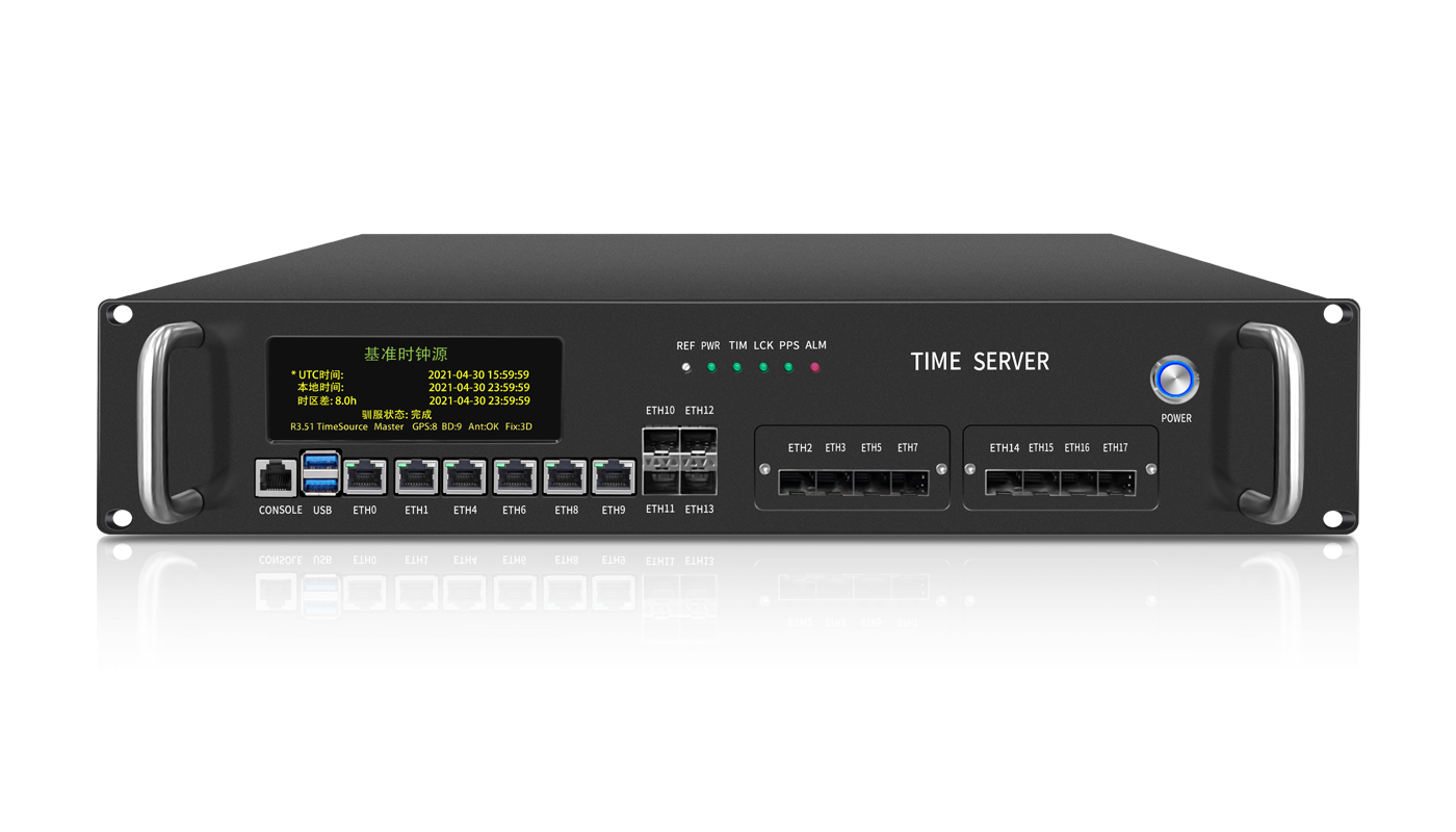设备采用冗余系统架构,内部基于独立的CPU与FPGA构建驯服系统,除接收双北斗卫星系统与GPS的星历数据与原子钟频标外,更内置高稳铷原子钟作为本地时钟源。系统支持五路时间源输入,具备多重延时补偿、滤波及自适应PID算法,实现纳秒级时间同步精度与无缝切换能力。在卫星信号中断时,铷钟可持续输出高稳定时间信号,确保授时不中断。设备同时支持级联与扩展,满足复杂网络架构下的时间同步需求。